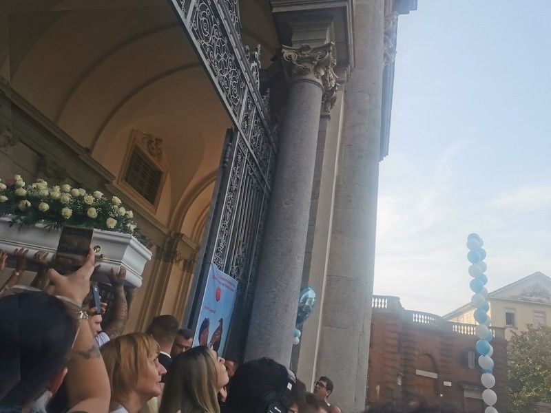 E' stato il momento in cui il dolore dei giovani ha trovato un proprio linguaggio: il rombo delle moto, i fuochi d’artificio e fumogeni all’uscita della bara bianca dalla cattedrale, i Tiktok del ragazzo trasmessi sul maxi schermo montato all'esterno, le magliette con il volto di Kevin indossate da tutti gli amici e i parenti, le note di "Ovunque tu sarai" di Irama e di "Promettimi" di Elisa.