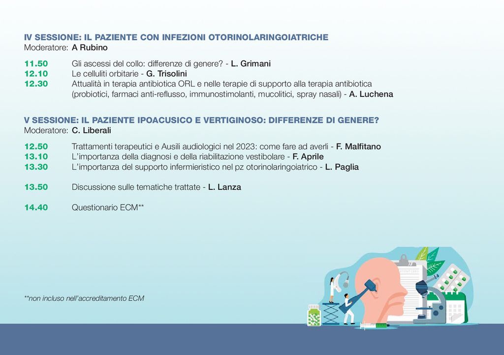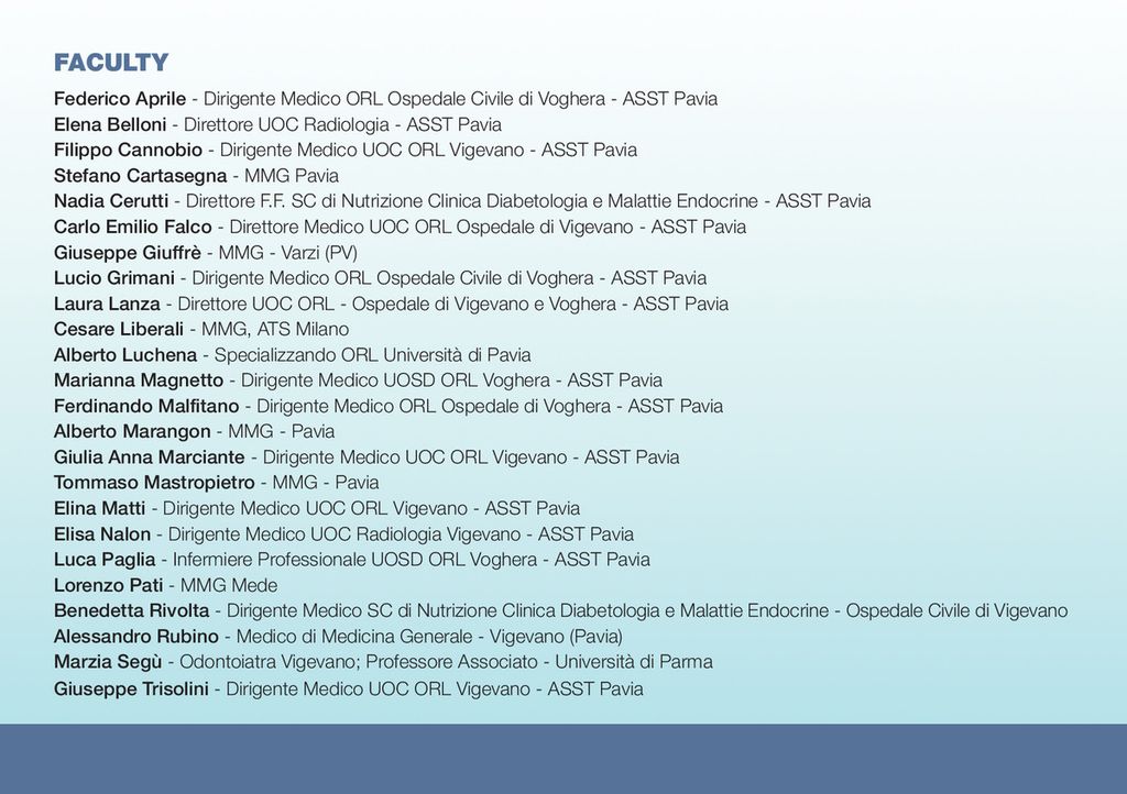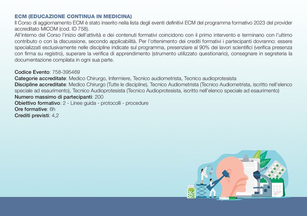 È indirizzato ai Medici di Medicina Generale e agli Infermieri professionali, oltreché agli specialisti otorinolaringoiatri ed a tutte le discipline mediche che svolgono attività clinica per patologie di confine, con l’obiettivo di rafforzare l’integrazione tra Ospedale e Territorio.