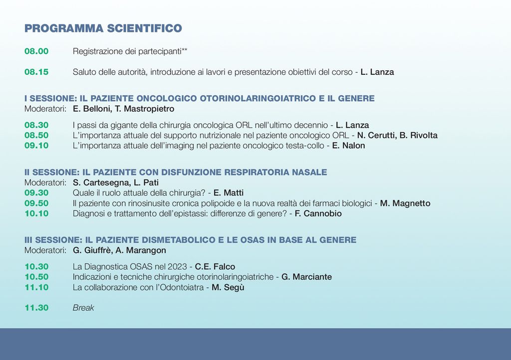 La giornata organizzata dall’UOC Otorinolaringoiatria dell’Ospedale Civile di Vigevano, diretta dalla dott.ssa Laura Lanza, diventa un’occasione di confronto per confermare certezze oppure modificarle radicalmente, grazie ad un confronto diretto tra Relatori e Partecipanti, sempre con uno sguardo rivolto al genere, come suggerisce la moderna gestione del paziente.