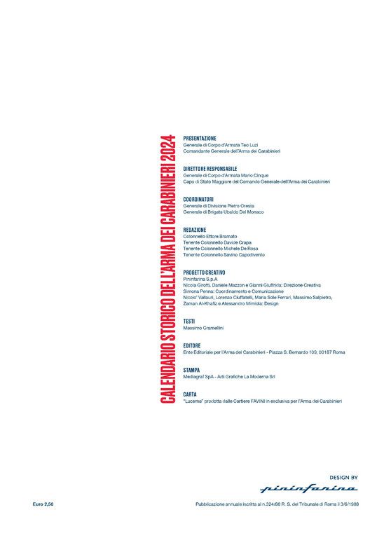 Il Comandante Generale, Gen. C.A. Teo Luzi, nella mattinata odierna, ha presentato il Calendario Storico dell’Arma dei Carabinieri ed. 2024. A illustrare l’opera, realizzata dallo studio di design Pininfarina con il contributo dell’editorialista Massimo Gramellini per la creazione dei testi, è il celebre conduttore televisivo Amadeus, nella splendida cornice dell’Auditorium Parco della Musica.