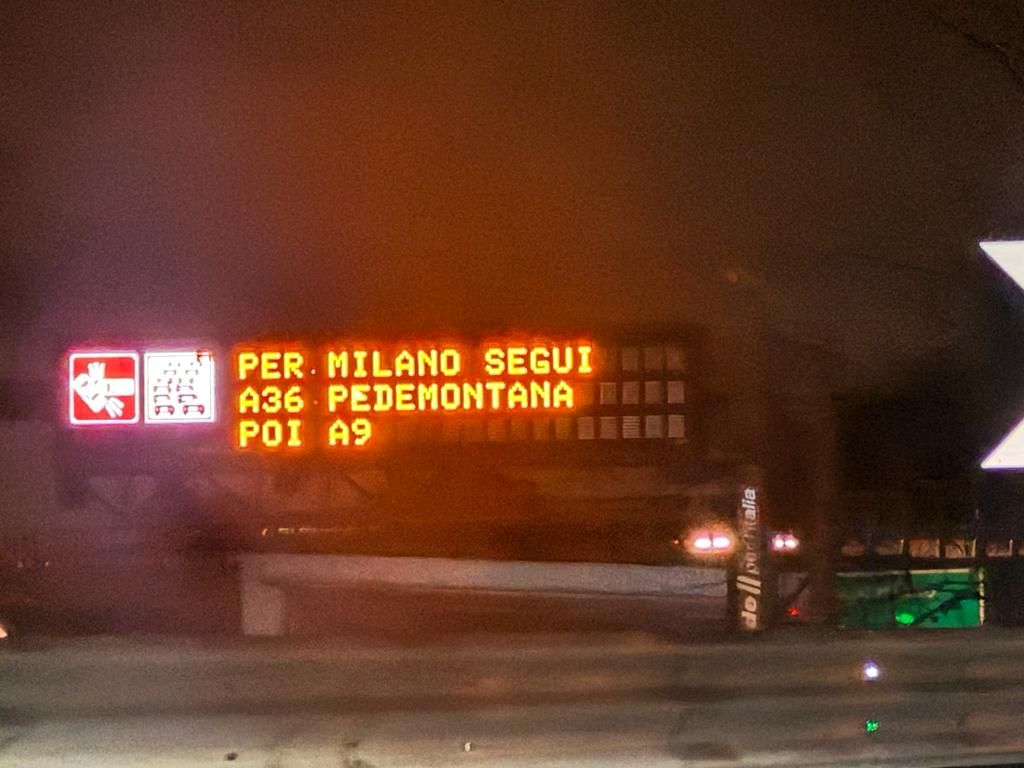 L'incidente più grave è avvenuto all'alba: sulla A8 Milano-Varese è chiuso il tratto tra l'allacciamento con la A36 Pedemontana e Origgio ovest verso Milano per un incidente avvenuto al Km 13 nel quale sono coinvolti un mezzo pesante, che ha fatto un salto di carreggiata, e due auto.