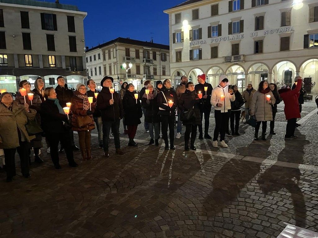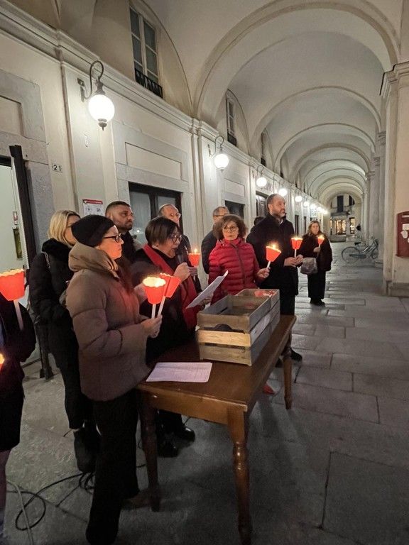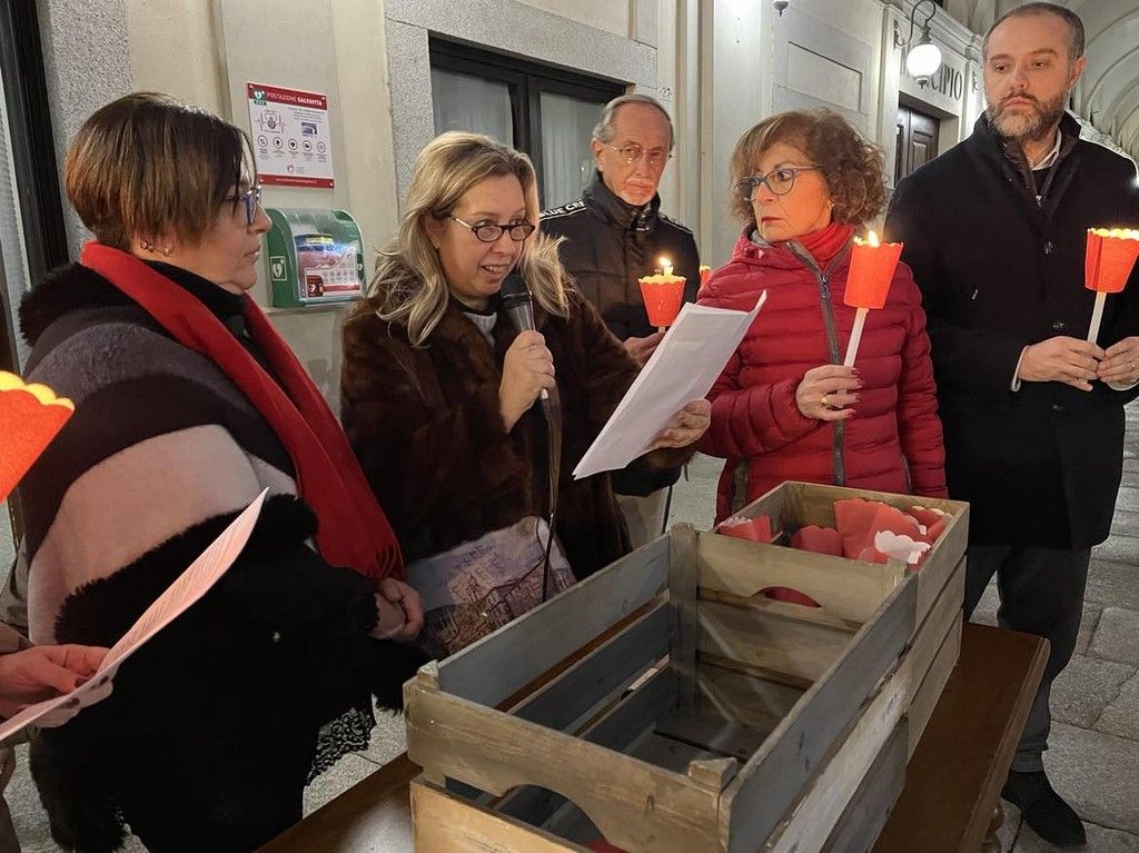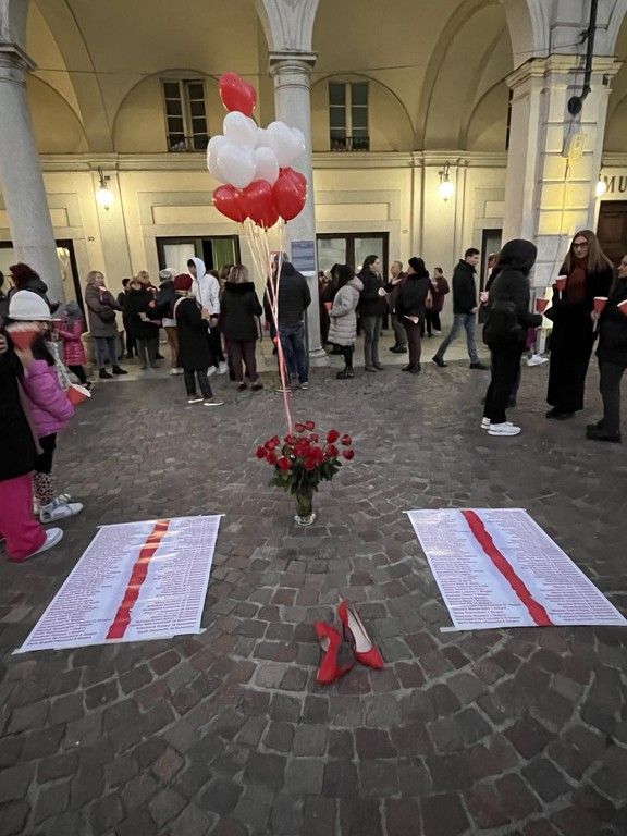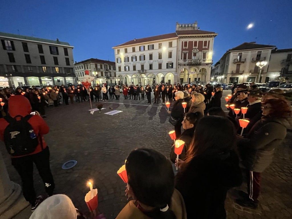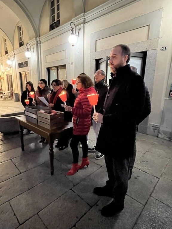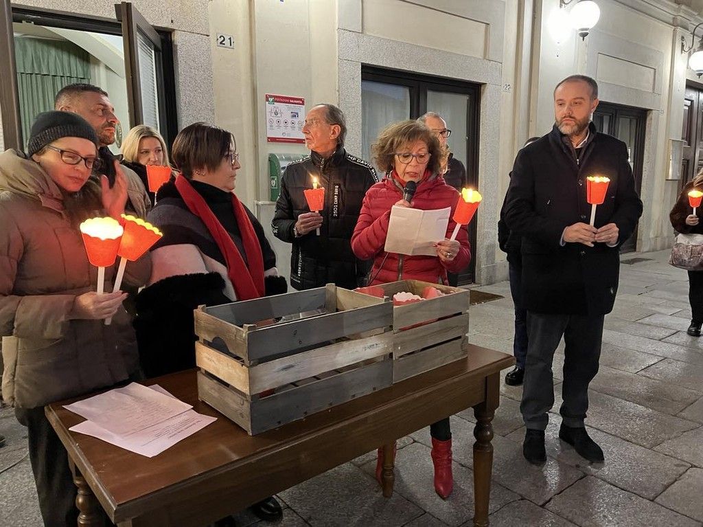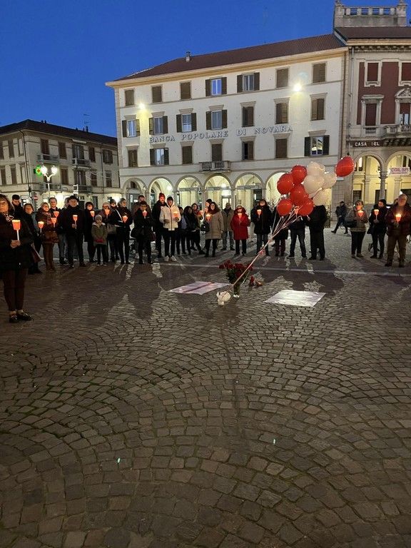 Oltre ai rappresentanti delle associazioni locali, delle forze dell’ordine e della presidente della cooperativa “Liberazione e speranza” gestore del Centro antiviolenza di Novara Elia Impaloni, la piazza è stata affollata da cittadini che, stringendo tra le mani una fiaccola, si sono disposti silenziosamente a ferro di cavallo intorno ai due manifesti posati a terra sui quali erano scritti i nomi delle 105 donne uccise dall’inizio del 2023.