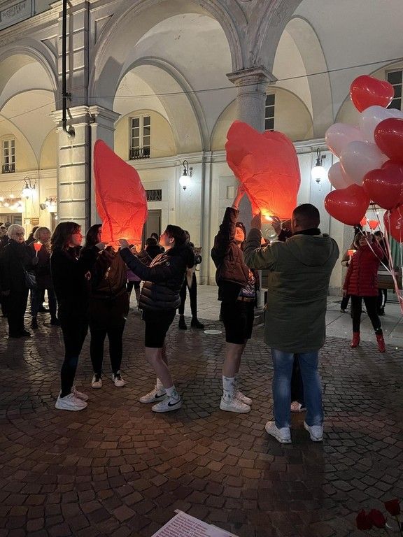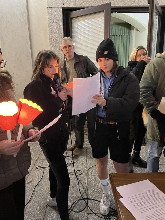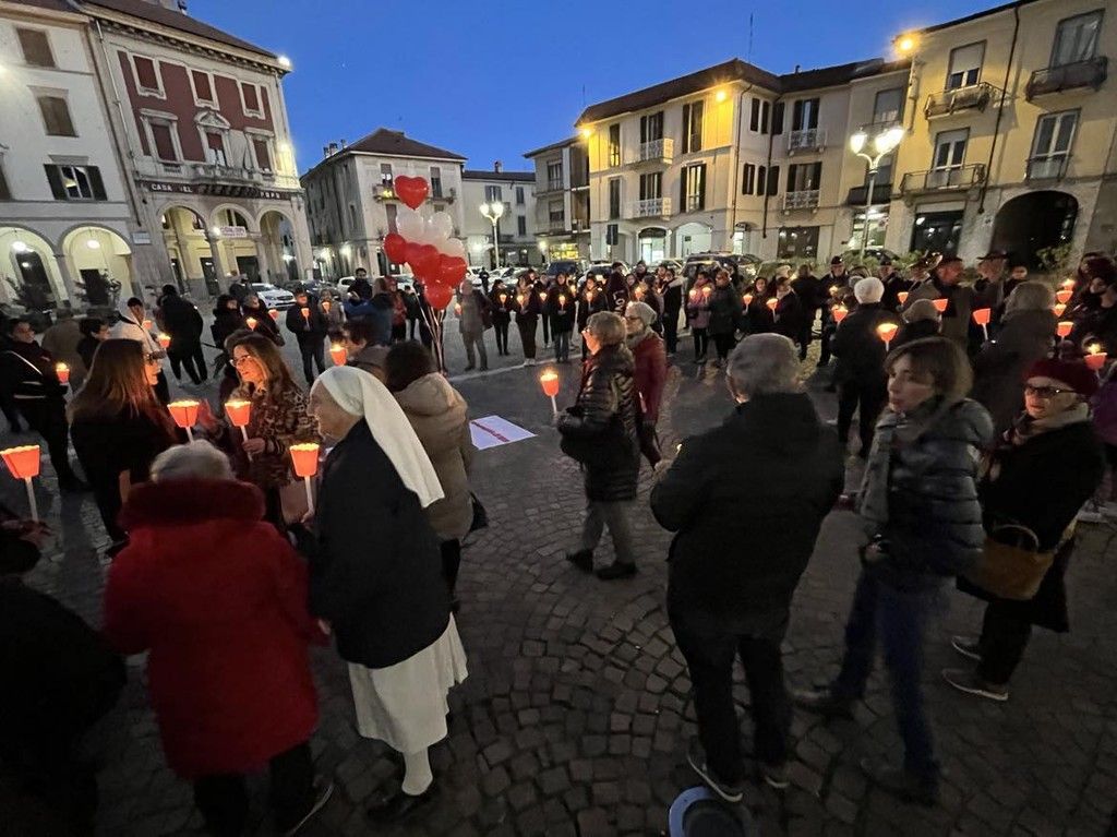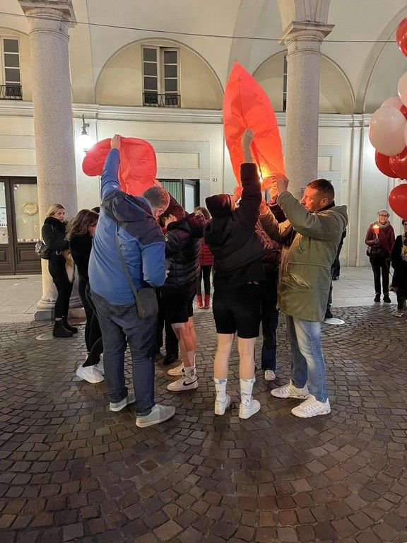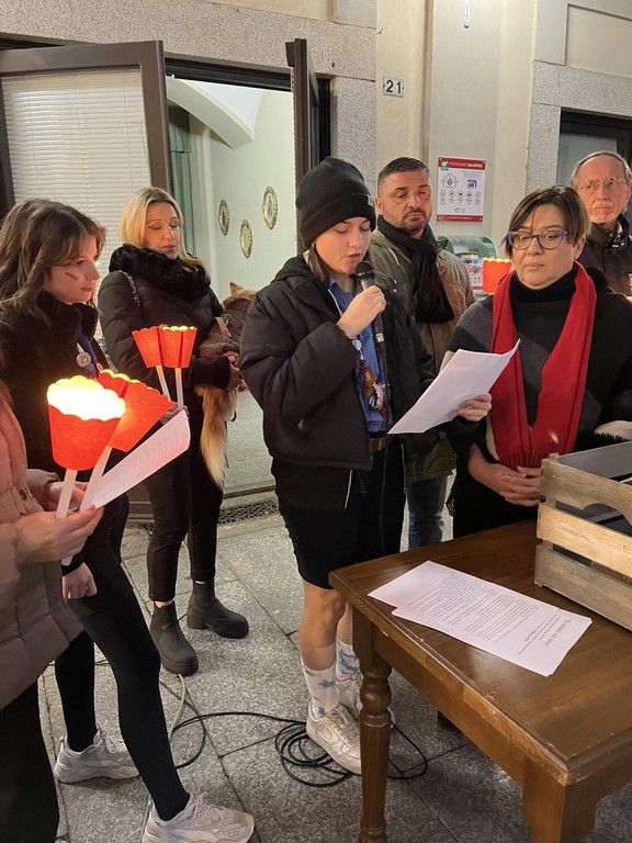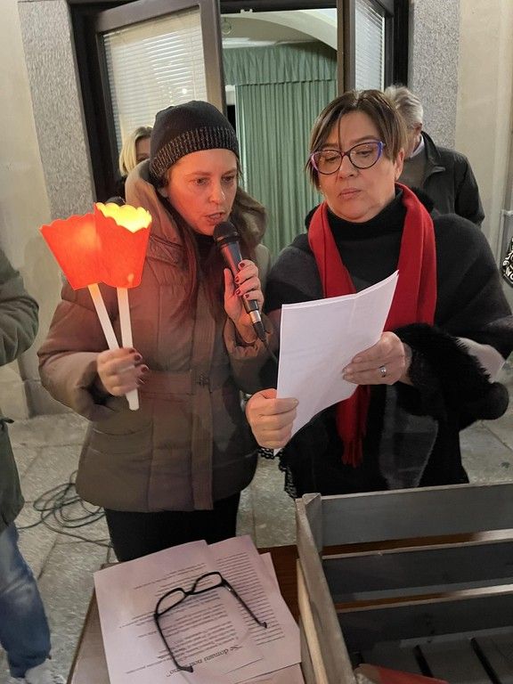 Alcune donne si sono alternate nella lettura di pensieri e frasi sul tema della violenza. Molto toccante il momento nel quale sono intervenuti i ragazzi degli Scout trecatesi che, al tintinnio di chiavi e oggetti metallici, hanno liberato in cielo due lanterne rosse e una bambina che ha fatto volare dei palloncini bianchi e rossi. Don Tommaso Groppetti ha guidato i presenti in un breve momento di preghiera in ricordo delle vittime.