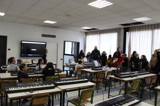 Tappa obbligata poi l’aula di robotica, rifornita quest’anno anche di droni e quelle di informatica e, sul fronte delle lingue straniere, i laboratori di spagnolo, francese e inglese, l'ampia aula di educazione artistica, sempre più ipertecnologica con tavolette digitali speciali e i lavori  preparati dagli studenti, il laboratorio di musica, con le performance dei ragazzi alle tastiere. Insomma, di tutto e di più, senza dimenticare le aule di tecnologia, con la nuovissima stampante 3d, la sala cinema, e quelle di apprendimento facilitato per studenti con bisogni educativi speciali.