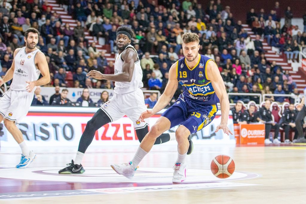 Trapani: Horton 7, Renzi 12, Notae 11, Mian 10, Mollura 11, Rodriguez 9, Marini 10, Imbrò 2, Pullazi 11, Dancetovic, Mobio 10, Pugliatti. All: Parente. Tiri da due: 18/30, tiri da tre: 14/36, tiri liberi: 15/19, Rimbalzi 35 (7+28), palle perse 14.