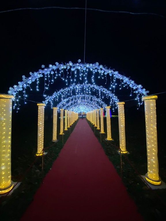 Una spettacolo scaturito dall'accensione in contemporanea delle 700mila luci a led installate interamente a mano dalla squadra di Lino Betti, storico ideatore della manifestazione. Decorazioni a tema natalizio, animaletti del bosco, fiori variopinti e tutte le creazioni fantastiche che animano il percorso - tutte realizzate artigianalmente utilizzando materiali di recupero, come plastiche riciclate e scarti edili - hanno preso vita per la gioia di grandi e piccini.