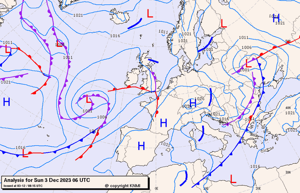 Un ampia area di bassa pressione posizionata sull'Europa occidentale, responsabile delle fasi perturbate di questi giorni, continua ad essere alimentata da aria fredda di matrice artica. Nella giornata odierna, la temporanea estensione di un promontorio anticiclonico dal basso atlantico fin verso l'Europa centro orientale, garantirà sulla nostra regione tempo stabile. Tuttavia l'afflusso di aria fredda di matrice artica, porterà un ulteriore calo delle temperature. lunedì 4 dicembre una modesta e veloce perturbazione valicherà le alpi portando un nuovo graduale peggioramento del tempo dal pomeriggio, ad iniziare dai settori occidentali, con deboli precipitazioni, nevose anche in pianura in estensione al resto regione entro la tarda serata. Rapido esaurimento dei fenomeni già nella mattina di Martedì. Temperature al di sotto della media del periodo. Mercoledì 6 e giovedì 7 dicembre, una debole rimonta anticiclonica dalla Spagna, si estenderà fin verso il nord Italia e di fatto la nostra regione, portando una certa stabilità atmosferica, ma in un contesto termico decisamente invernale per via del continuo respiro artico in entrata sul catino padano, proveniente dai quadranti nord orientali. Venerdì 8 probabile nuovo veloce peggioramento.