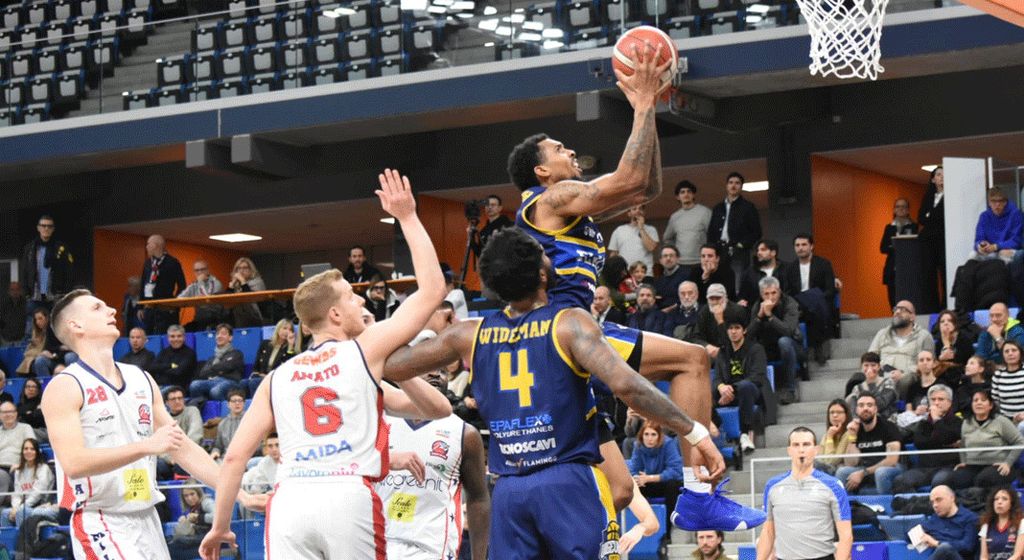 Dopo il riposo Smith continua a tenere a contatto Vigevano con 7 punti filati, ma sono due triple di Potts e Amato che ricacciano indietro gli ospiti sul 59-52 al 25', fino a toccare il +12 sul 71-59. Il rientro di Battistini produce un controparziale di 0-9 che riavvicina Vigevano sul 71-68 al 33' con una penetrazione di Bertetti.