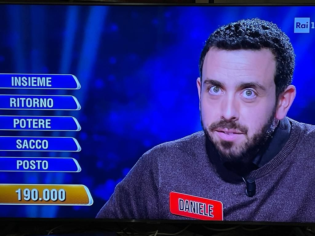 Nella fortunata Ghigliottina di questa sera è riuscito a indovinare tutte le parole corrette senza quindi mai dimezzare il montepremi e, con l’intuizione giusta, ha trovato la parola finale, “vuoto”, che gli è valsa l’enorme vincita di 190.000 euro.