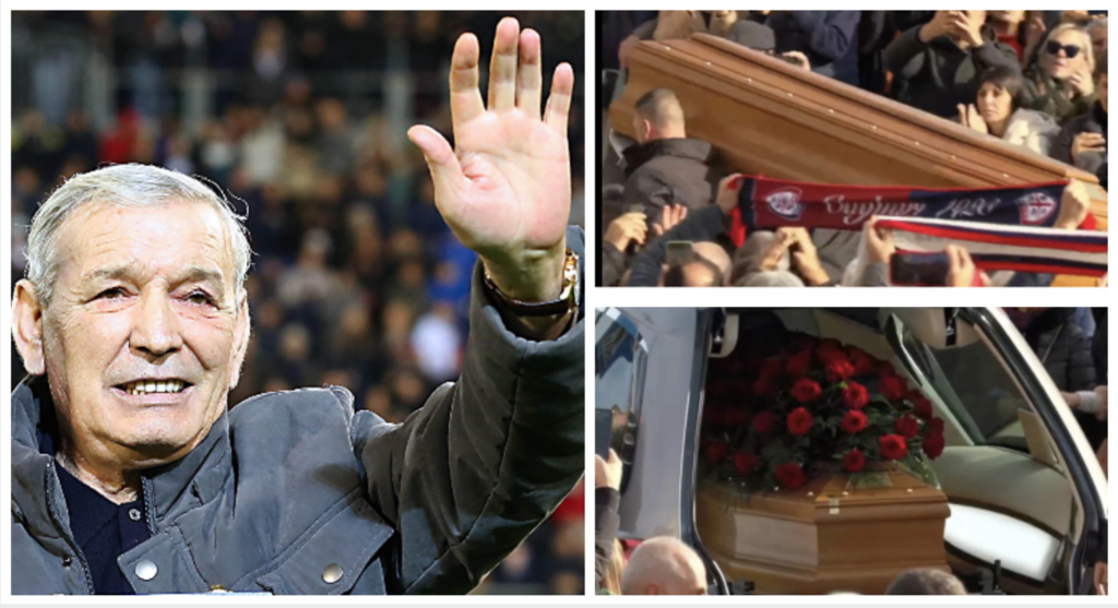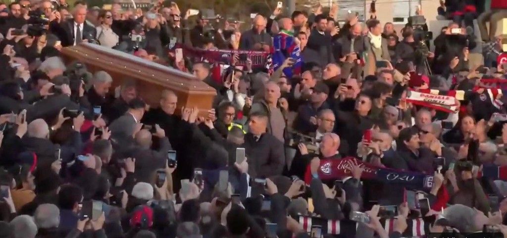 Folla oceanica a Cagliari per i funerali di Gigi Riva. Alle 16 il feretro di "Rombo di Tuono" è entrato in chiesa, scortato dai familiari tra gli applausi di almeno tremila persone raccolte in silenzio sul sagrato della Basilica di Bonaria di Cagliari.
