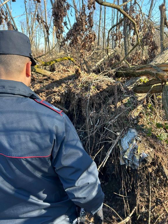 Il maltempo accorso nel mese di agosto 2023, che aveva causato la caduta di molti alberi di grosse dimensioni, ha facilitato ai militari operanti la visibilità del materiale sopradescritto che riaffiorava dal terreno a causa dello sradicamento degli alberi stessi. All’atto delle verifiche la presenza del bosco non ha reso possibile ai militari la corretta quantificazione e caratterizzazione del materiale interrato.