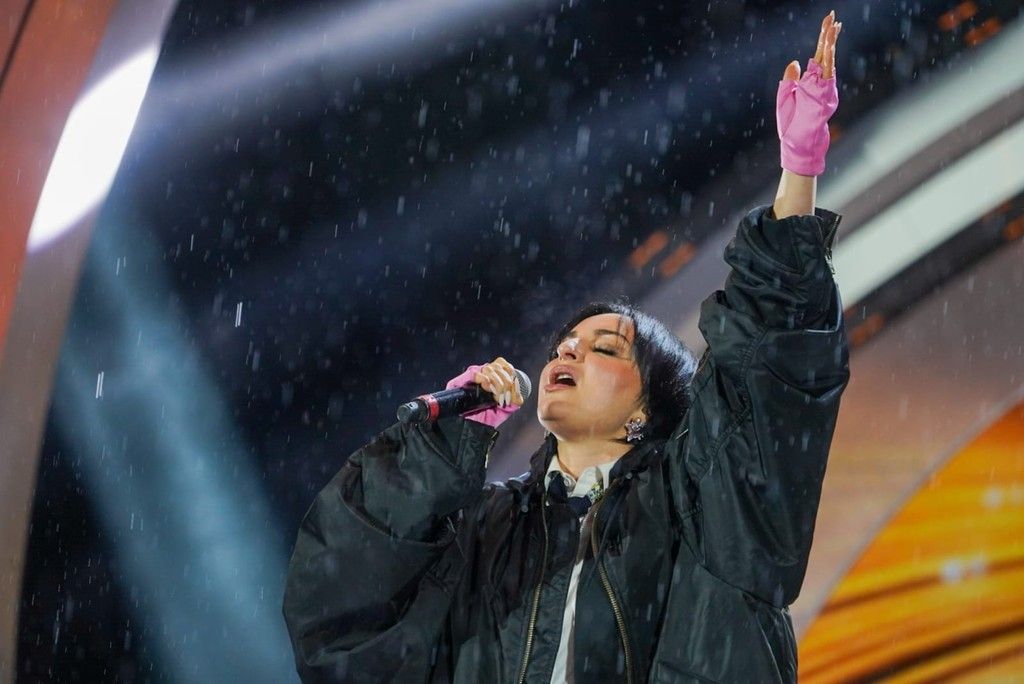 Il concerto all'aperto della cantante sul palco di piazza Colombo non si sarebbe dovuto tenere a causa della pioggia.