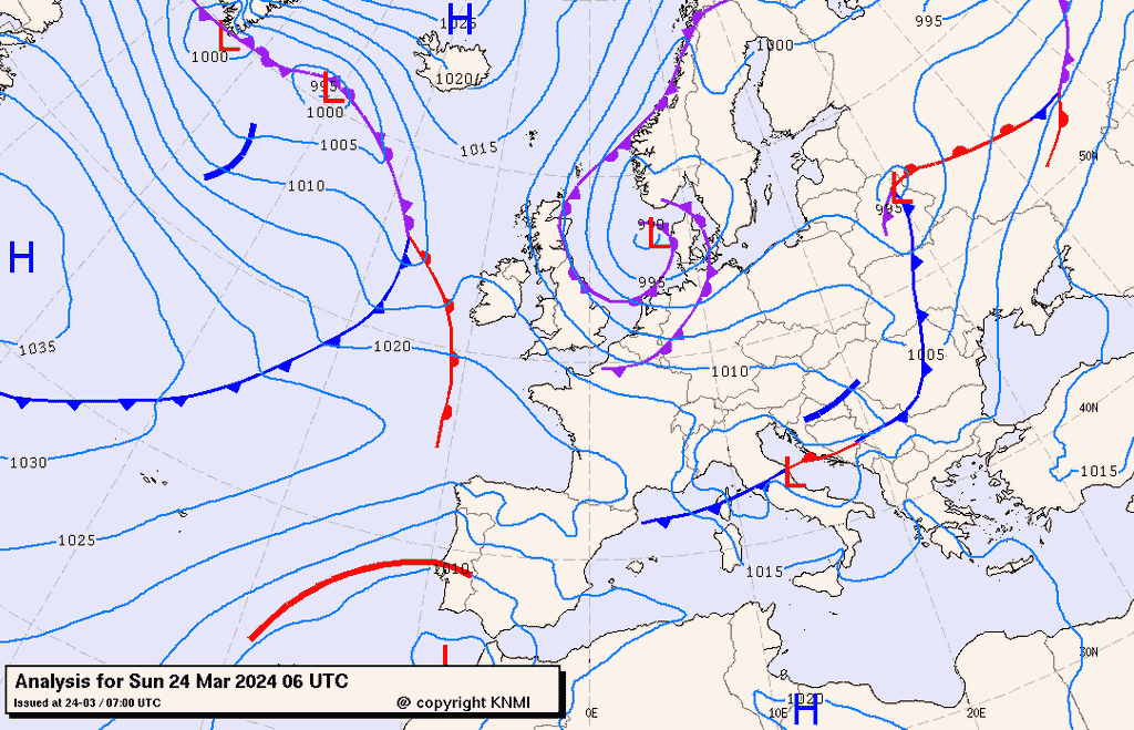 La saccatura basso-pressoria, avente il suo minimo tra Danimarca e Norvegia, con il suo graduale movimento verso levante, favorirà l'ingresso di correnti fredde e secche nord-occidentali. Condizioni di tempo stabile, sulla nostra regione, fino alla giornata di lunedì sera, quando l'ingresso di umide correnti atlantiche apporteranno generali condizioni di maltempo.