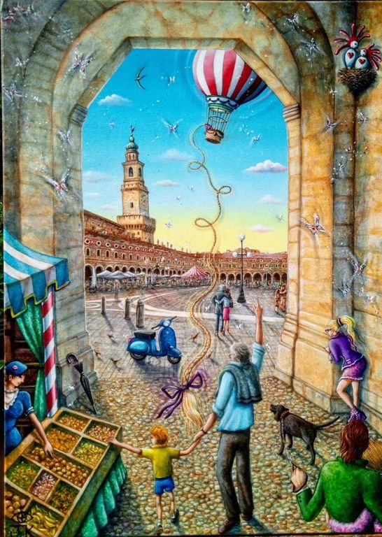 la vita quotidiana delle persone, presentandoli , attualmente, ambientati nel Castello della città dove vive, come se fossero sul set di un film.