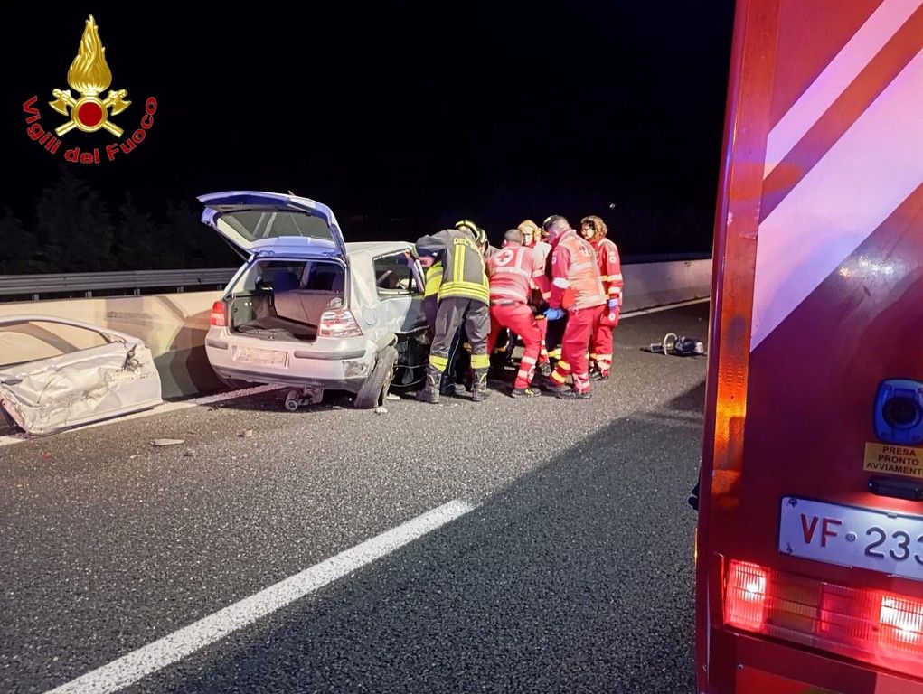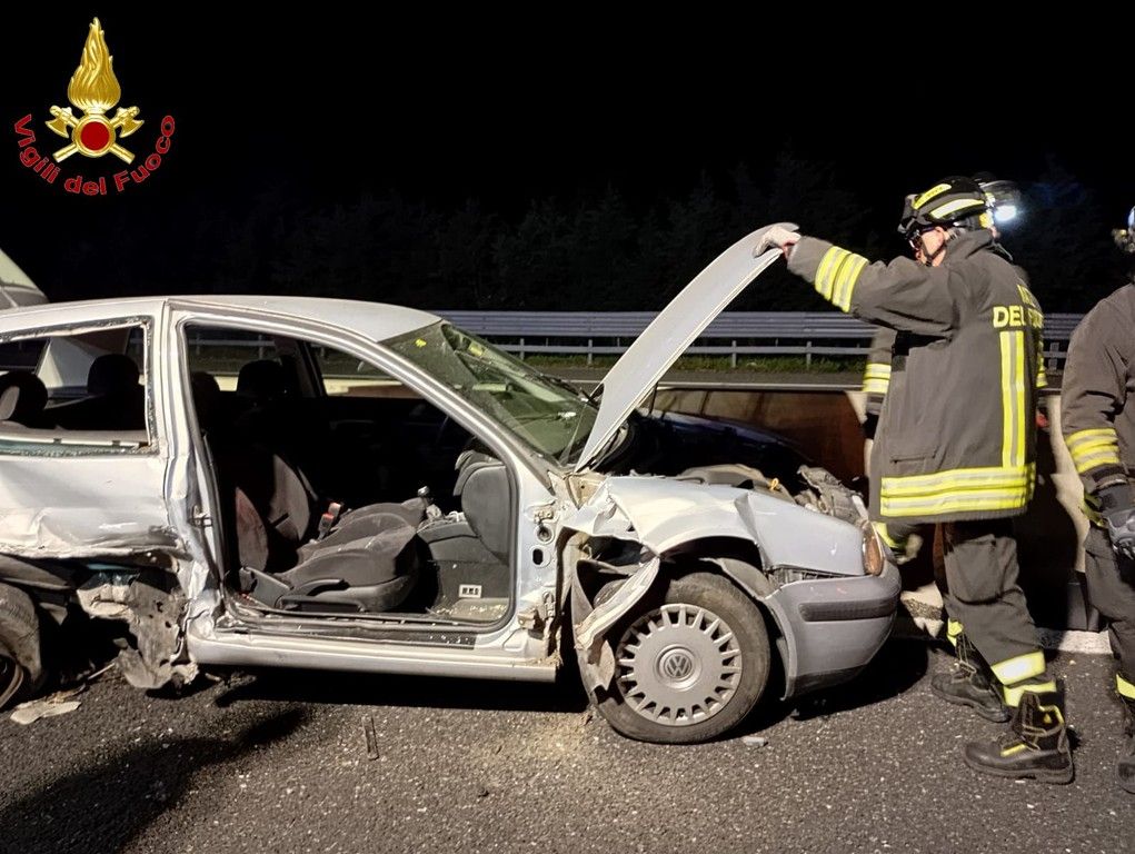 Tempestivo l'intervento di vigili del fuoco che hanno dovuto aprire uno dei veicoli incidentati utilizzando delle pinze idrauliche per permettere il soccorso ad un uomo coinvolto nel sinistro e rimasto incastrato nelle lamiere dell'abitacolo.