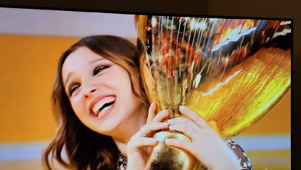 "Sto ancora realizzando cosa sia successo: essere entrata qua senza saper niente e adesso sto ripercorrendo tutto quello che ho fatto. È una cosa incredibile. Dedico questo premio alla mia famiglia che mi ha sempre sostenuto, da quando cantavo in cameretta".