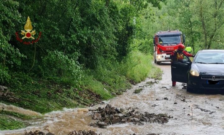 Oltrepò: resta impantanata con l'auto sulla strada allagata, donna soccorsa dai Vigili del fuoco