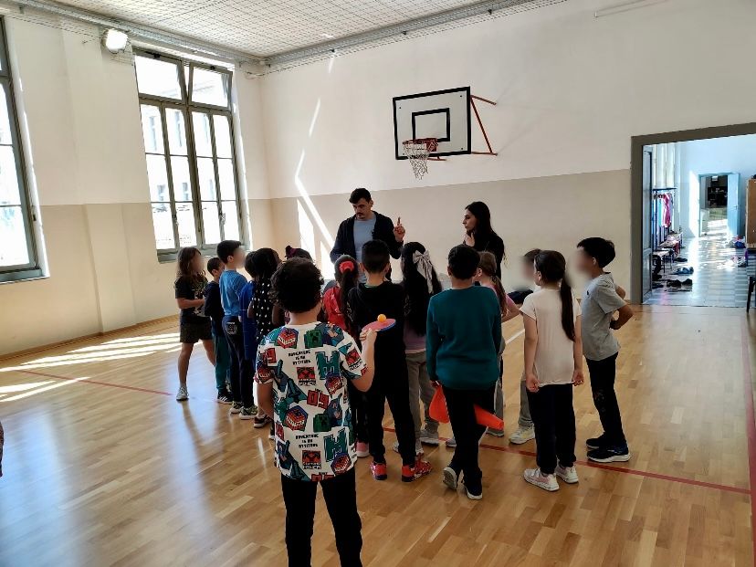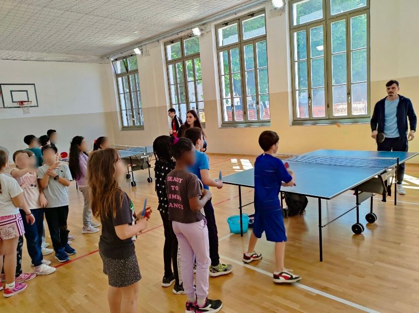 Dal 3 al 18 aprile, in collaborazione con la dirigente scolastica e l’insegnante di educazione motoria della scuola primaria “Regina Margherita”, il progetto “Gioco-Sport Tennistavolo” è entrato ufficialmente nella palestra dell’istituto vigevanese. I tecnici Vitali Deleraico, responsabile del settore giovanile ducale, Doriano Grossi e il giovane Matteo Restaino hanno avviato il fitto programma con gli studenti delle classi quarte e quinte (A e B).