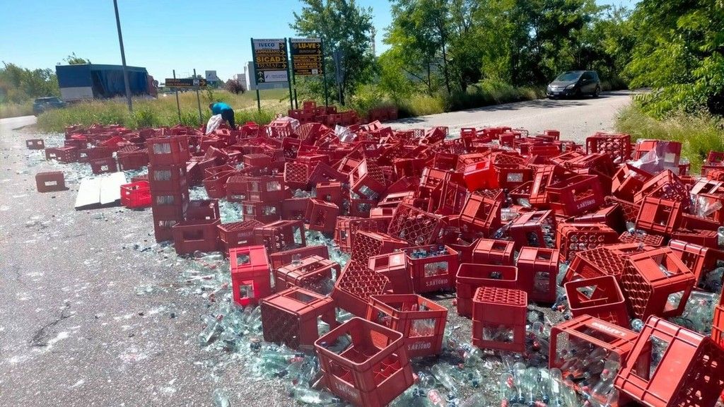 Centinaia di bottiglie sono finite per strada frantumandosi in mille pezzi attorno a mezzogiorno di sabato. Non si registrano per fortuna feriti: traffico deviato, segnalate code in uscita a Uboldo Origgio sulla A9 provenendo da Lainate
