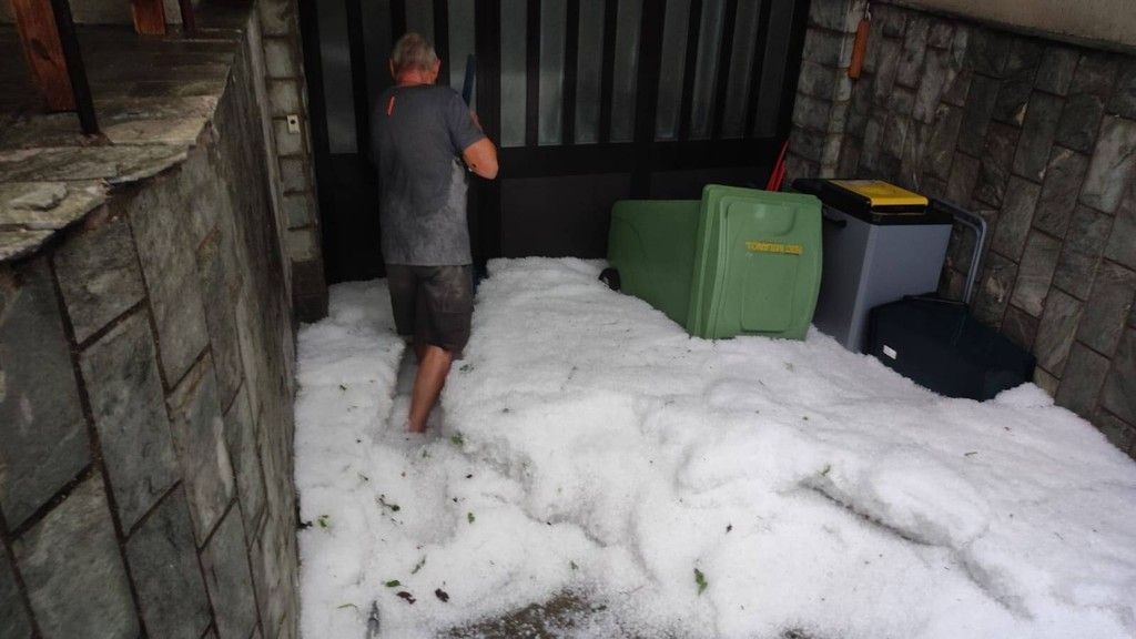 In diversi punti del paese sono caduti tanti chicchi di grandine da coprire il terreno e da dover essere spalatati. Problemi anche al sottopassaggio di via Monfalcone dove un’utilitaria è rimasta bloccata dall’acqua.