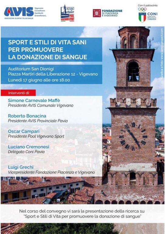 Un incontro al quale prenderanno parte Simone Carnevale Maffè (Presidente AVIS Comunale Vigevano), Roberto Bonacina (Presidente AVIS Provinciale Pavia), Oscar Campari (Presidente Pool Vigevano Sport), Luciano Cremonesi (Delegato CONI Pavia), Luigi Grechi (Vicepresidebnte Fondazione Piacenza e Vigevano) e molte delle realtà sportive della città, fra le quali Vigevano 1955 che sarà rappresentata da Michele Peroni.