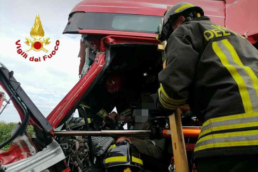 Un tamponamento tra tre mezzi pesanti ha avuto come conseguenza l'ostruzione completa della carreggiata e ha causato il ferimento dei tre conducenti, uno dei quali è rimasto bloccato dalle lamiere all'interno del camion.