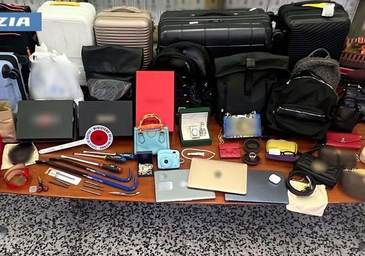 Gli agenti della Squadra investigativa del Commissariato hanno individuato a Corsico (Milano) un’auto con due persone, già segnalata perchè usata per dei furti. L’auto è arrivata in un’area con alcuni box in piazza 1° Maggio, dove i due occupanti hanno scaricato dei trolley. I poliziotti li hanno subito controllati, oltre ai due trolley, in un box a due borse da viaggio, tre pc portatili, un paio di cuffie e un passaporto di una donna. Tutto rubato nel parcheggio di un outlet di Rodengo Saiano in provincia di Brescia. Nel bagagliaio dell’auto, sono stati trovati diversi gioielli tra cui collane e orecchini della stessa donna derubata; nel cruscotto, invece, un contenitore con due anelli e nella portiera due punte di trapano, un coltello a lama pieghevole e una forbice utilizzati probabilmente per infrangere i vetri delle auto.