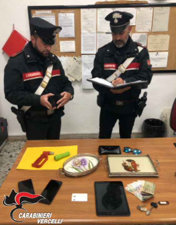 Il fermato è stato così trovato in possesso di oggetti di sicura provenienza furtiva occultati in uno zainetto: documenti di persone terze, banconote straniere, un iPad, una tessera carburante aziendale, mazzi di chiavi, occhiali da sole, argenteria ed una torcia a led.