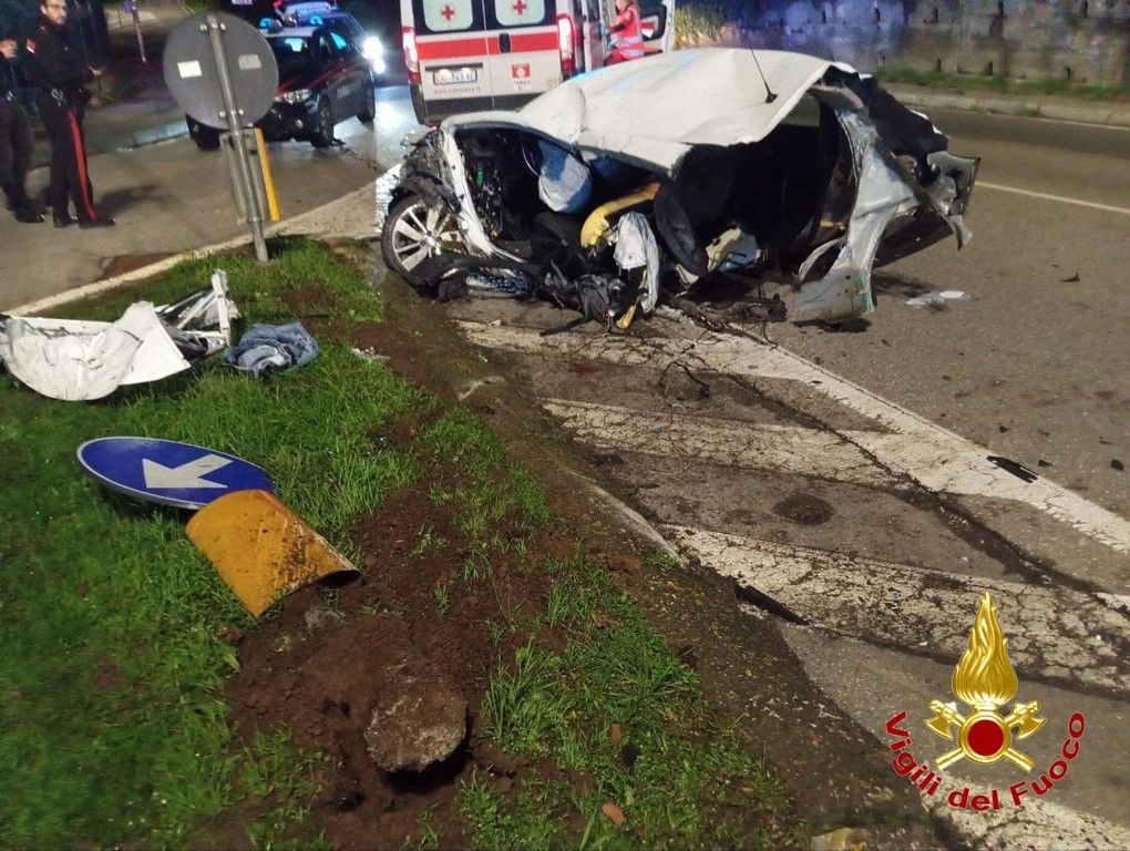 Due auto si sono scontrate violentemente nella notte tra venerdì e sabato, attorno alle 3 del mattino in via Costa del Re a Tradate (VA) sulla strada per Pianbosco.