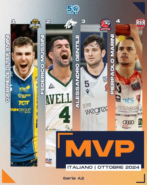 2️⃣ 𝑭𝒆𝒅𝒆𝒓𝒊𝒄𝒐 𝑴𝒖𝒔𝒔𝒊𝒏𝒊 - Protagonista di Avellino Basket con medie da 16.7 punti (56% da due, 41% da tre), 2.8 rimbalzi e 2.5 assist nel record 3V-3S