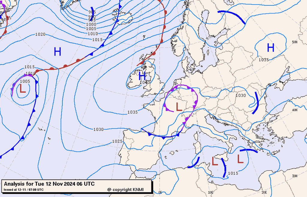 Lieve indebolimento dell'alta pressione quest'oggi per un nocciolo di aria fredda in transito dall'Europa centrale verso la penisola iberica, che sfiora solamente la nostra regione. Nei prossimi giorni nuovo rinforzo dell'alta pressione con temperature intorno alle medie del periodo.