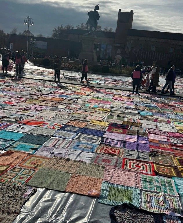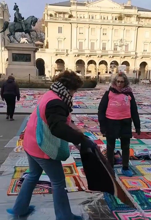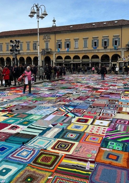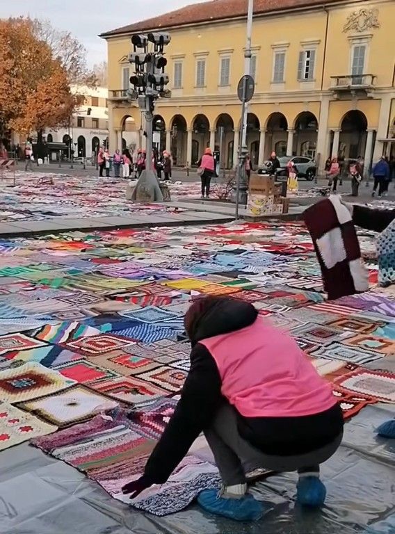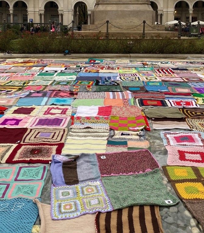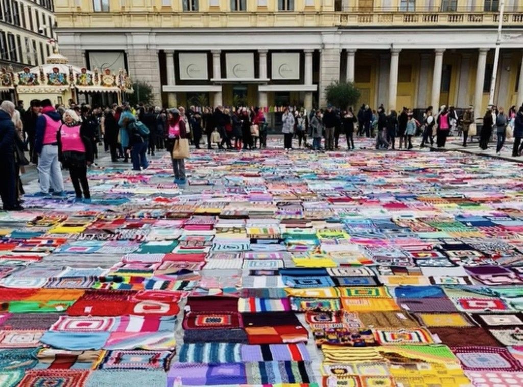 Domenica 24 novembre, la piazza è stata interamente colorata da 3.000 coperte in maglia colorate, ognuna di un metro quadrato.