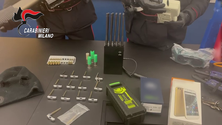 Sono stati, inoltre, rinvenuti e sequestrati a carico degli indagati una fiamma ossidrica, alcuni passamontagna, centraline modificate di autovetture, duplicati di chiavi e spadini per l’apertura di macchine, nonché’ un disturbatore di frequenze (jammer), tutto materiale attinente ai reati per cui si procede.