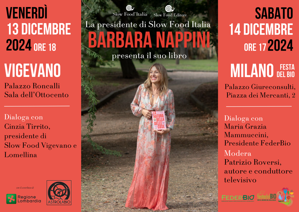 In Lombardia sarà presentato il nuovo libro di Barbara Nappini, presidente di Slow Food Italia, La natura bella delle cose, un saggio-memoir che racconta come le nostre scelte possano contribuire a cambiare il mondo.