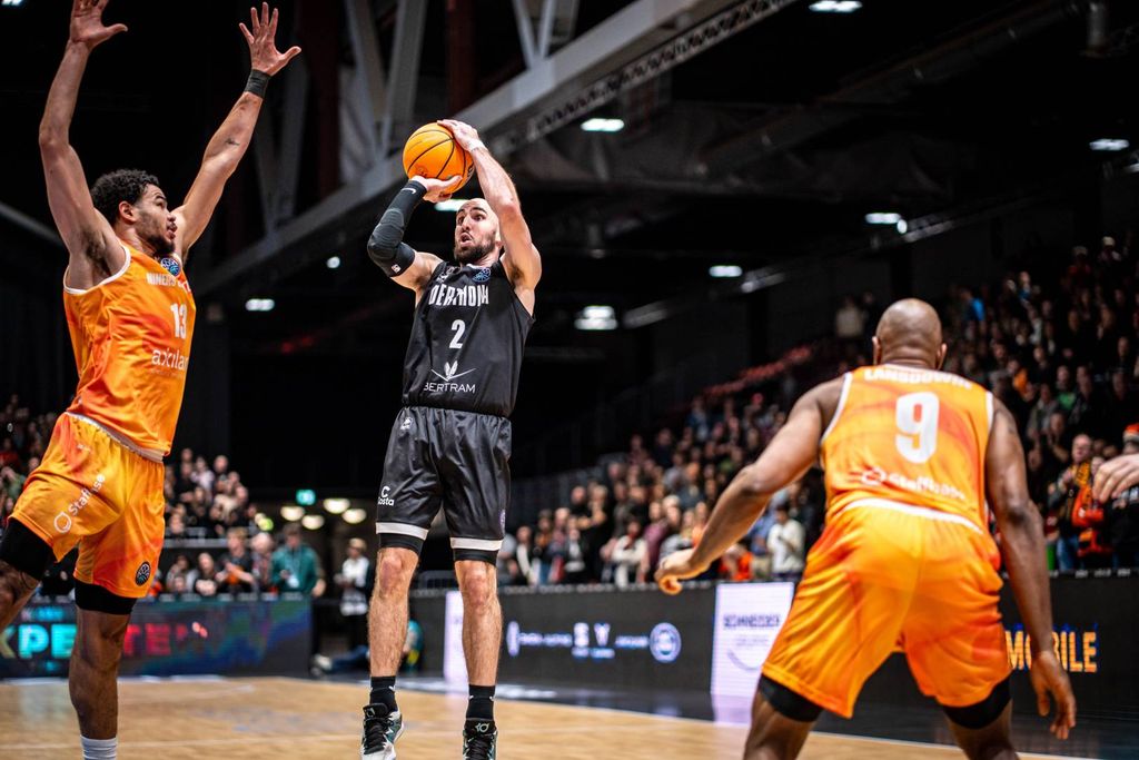 Continua a non tradire la versione europea della Bertram Derthona. La squadra bianconera mantiene l’imbattibilità stagionale nella Basketball Champions League andando a vincere con autorità in Germania sul campo del Niners Chemnitz, nella quinta e penultima giornata del Girone G della massima coppa continentale per club della FIBA. 77-61 l’eloquente punteggio che bissa il successo dell’andata e testimonia una conduzione di gara ragguardevole contro l’attuale terza forza della Bundesliga. I due punti consentono di mantenere il primato solitario in classifica ad un turno dal termine della prima fase e il relativo lusso di andare alla decisiva sfida di martedì prossimo in casa dell’immediata inseguitrice BAXI Manresa, salvatasi nella trasferta odierna sul campo del Benfica (80-91, dopo essere stata a -11 all’intervallo), con la possibilità di perdere entro i 17 punti contro gli spagnoli e chiudere lo stesso al primo posto, qualificandosi direttamente alla seconda fase a gironi del Round of 16 senza passare per lo sforzo supplementare del Play-In, cui sono costrette seconda e terza classificata del gruppo.