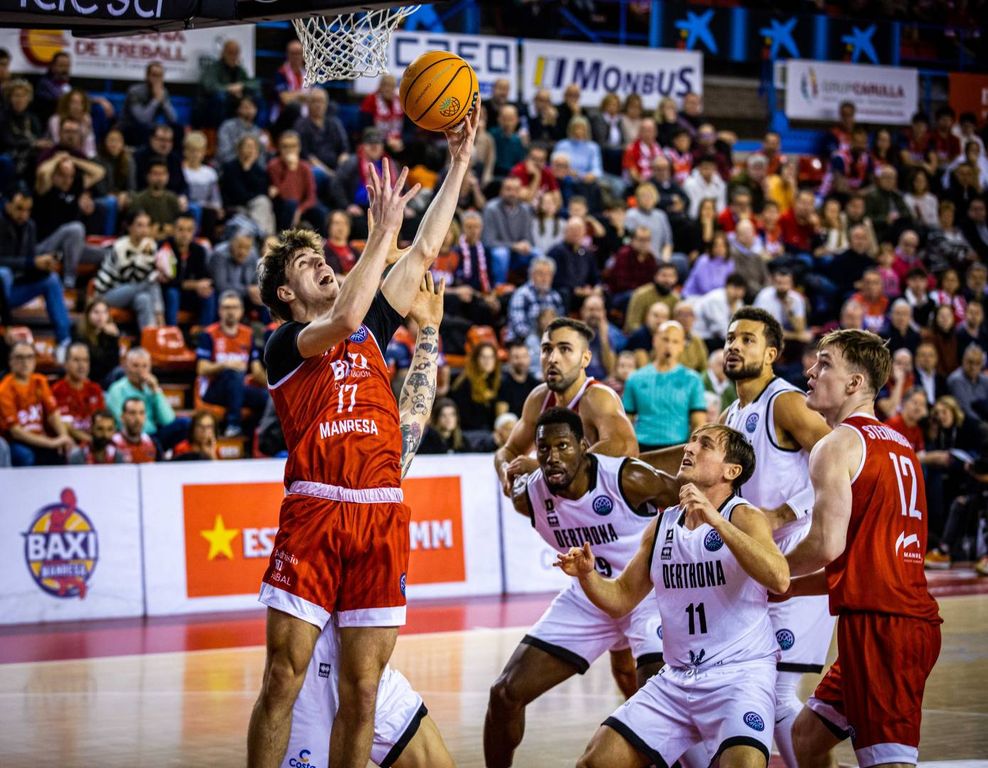 Dopo aver toccato anche il -22 (69-47) subendo le giocate in particolare di Saint-Supery, da metà terzo quarto Tortona trova improvvisa linfa, cinque liberi e una tripla di Weems la fanno tornare in “zona Top 16” con il 74-62 a 33” dall’ultima minipausa, con Biligha a combattere efficacemente sotto canestro. Le speranze della rimonta crescono in maniera decisa nel corso dell’ultimo quarto, una penetrazione di Strautins, la schiacciata di Kamagate su assist di Kuhse, seguita da una tripla del play americano, illudono la Bertram che si presenta sul -9 a 2’45” dal termine, 85-76. Tortona è ancora sul confortante -12 a un minuto e mezzo dal termine, 91-79, ma la tripla di Alston, un libero di Reyes e una persa a metà campo di Kuhse sulla pressione di Obasohan, che nel conseguente contropiede segna e subisce fallo, ridanno la qualificazione al Manresa con 27” da giocare visto il 98-79 sul tabellone. Tortona ruggisce ancora, la tripla difficilissima di Strautins “riconsegna” la qualificazione a 13” dal termine, time-out Manresa che al rientro trova due punti da sotto canestro di Steimbergs a 4” dalla fine. Saranno quelli decisivi perché dalla rimessa post time-out della Bertram nella metà campo spagnola Kuhse non segna il tiro da tre che avrebbe cambiato la storia del girone.