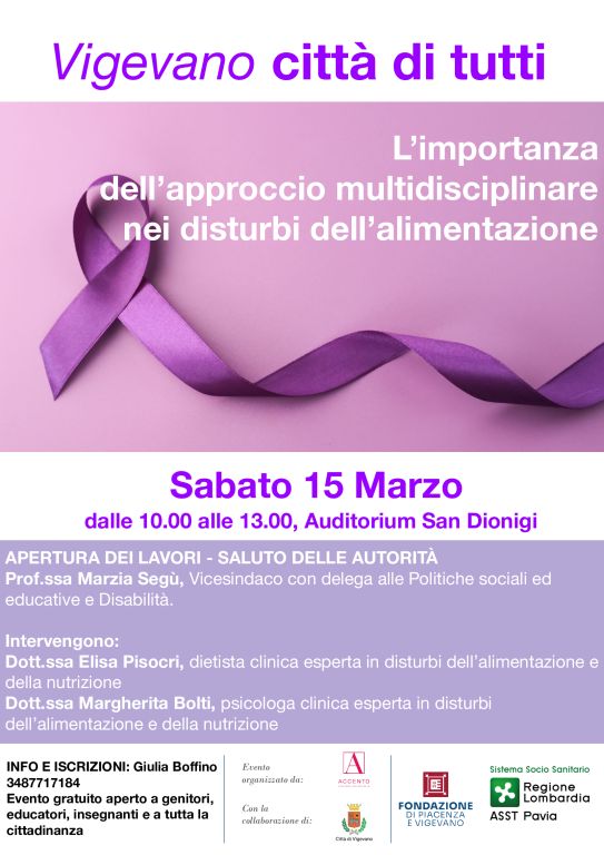 La Cooperativa Sociale Accento nell’ambito della rassegna Vigevano città di tutti – organizzata in collaborazione con il Comune di Vigevano e con il sostegno della Fondazione di Piacenza e Vigevano e dedicata ad approfondire i temi della disabilità e della socialità – promuove un appuntamento, gratuito e aperto a tutta la cittadinanza, focalizzato sui Disturbi della Nutrizione e dell’Alimentazione (DNA).