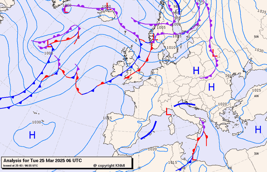 La vasta area di bassa pressione che si estende su gran parte del Mediterraneo Occidentale tende gradualmente ad assorbirsi e spostarsi verso levante causando un lento ma graduale miglioramento delle condizioni di instabilità che hanno caratterizzato il fine settimana.
