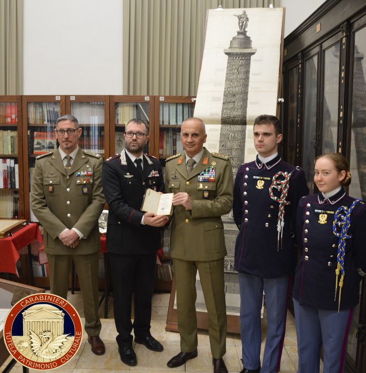 Il 24 marzo 2025, nella sede della Scuola Militare Teuliè di Milano, è stato restituito un bene librario risalente al 1731, sottratto in data imprecisata alla Biblioteca del rinomato Istituto.
