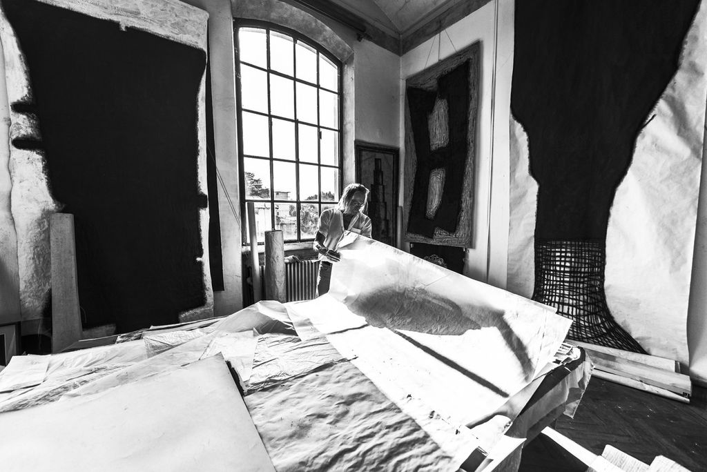 “Al riparo dal Cielo” è una raccolta di lavori iniziati nel 2004 in cui ricorre la forma della volta, che richiama il concetto di casa e di focolare. Azelio Corni affronta questo tema con uno sguardo quasi primitivo, in sintonia con il suo profondo interesse per ogni sfaccettatura del mondo arcaico. Decifrare l’universo primitivo non è semplice: spesso lo si approccia con una rigidità mentale fatta di schemi ideologici freddi e preconfezionati, che bloccano invece di liberare. Al contrario, nelle opere di Corni, i simboli e le intuizioni sprigionano un’energia incandescente e magmatica. Le sue imponenti strutture architettoniche racchiudono il senso primario della vita e della morte. Il nero, scelto come unico colore, si trasforma in un’emozione pura, capace di condurre verso l’infinito.