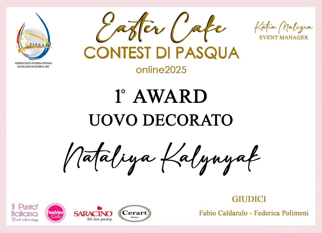 Le Torte di Natali di Kalinyak Nataliya si è aggiudicata il primo premio nella categoria "Uovo Decorato", un riconoscimento che celebra la maestria artigianale e la passione per la tradizione pasquale.