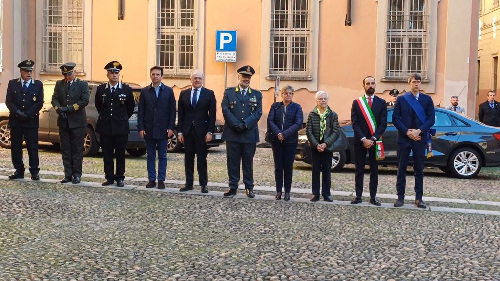 Le celebrazioni, alla presenza del Prefetto, Francesca De Carlini, delle massime Autorità civili, militari, religiose e delle Associazioni Combattentistiche e d'Arma, hanno preso l’avvio, alle ore 9.00, con la deposizione di una corona, presso la lapide commemorativa dei militari della guardia di Finanza, Martiri per la Liberazione di Pavia, Tenente Francesco Lillo, Appuntato Tommaso Coletta, Finanziere Roberto Spirito, uccisi il 26 aprile del 1946 in uno scontro a fuoco con Ufficiali della Guardia Nazionale Repubblicana.