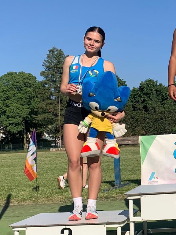 Nella categoria Ragazze seconda posizione per Emma Iacopini con punti 2400 ottenuti: m. 60 8”68, m. 600 1’58”32, lungo m. 4,08, getto del peso m. 7,64.
