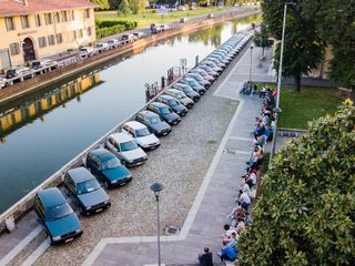 Ieri le utilitarie a coda tronca sono state esposte lungo il naviglio, mentre questa mattina, nella splendida cornice del Parco del Centenario, hanno dato forma alla scritta “Y40” immortalata dal drone pilotato da Carlo Baldini.