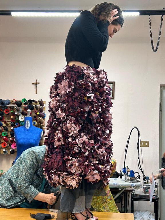 Tanti gli abiti creati assemblando e trasformando pezzi del fast fashion in opere originali e creative.