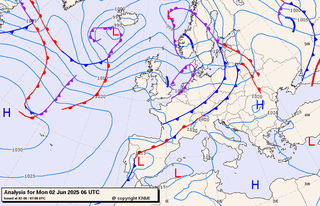 La fase anticiclonica di matrice africana che determina in questi giorni la prima ondata di caldo estiva cede nel corso della settimana all'ingresso di instabili correnti sud-occidentali causate dall'abbassamento del flusso zonale in Atlantico.