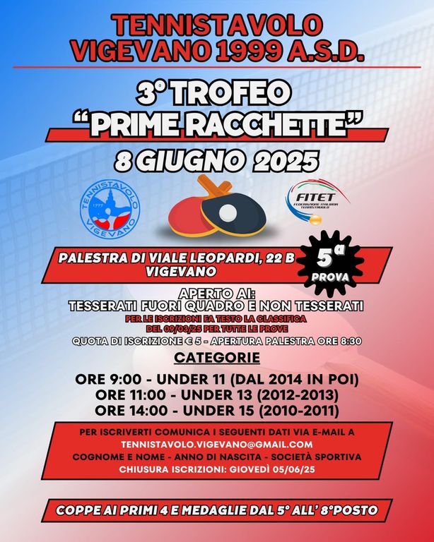 Il torneo “prime racchette” sbarca a Vigevano. La quinta e ultima prova del circuito giovanile si disputerà domenica 8 giugno proprio presso la palestra di viale Leopardi.