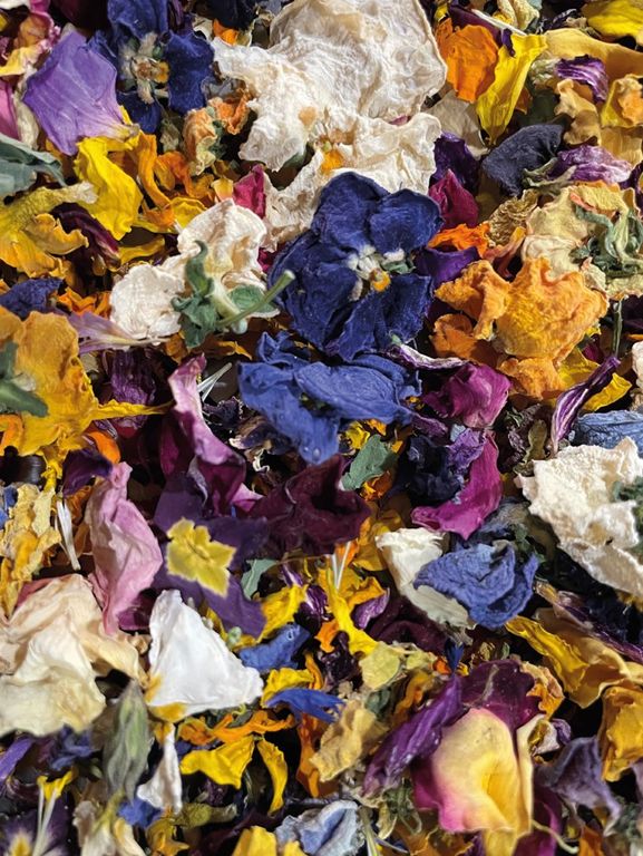 vantaggi sono molti. I fiori disidratati non hanno bisogno di refrigerazione e si conservano a lungo in un luogo fresco e asciutto. Questo garantisce grande praticità e flessibilità: chef e pasticceri possono pianificare le loro creazioni con più libertà, senza il rischio che i fiori si deteriorino. Inoltre, l’aspetto estetico e il sapore restano invariati, permettendo di mantenere alta la qualità delle preparazioni. Possono esser inseriti in impasti per lunghe lievitazioni, sopportano le temperature elevate di cottura così’ come il congelamento.