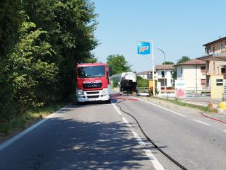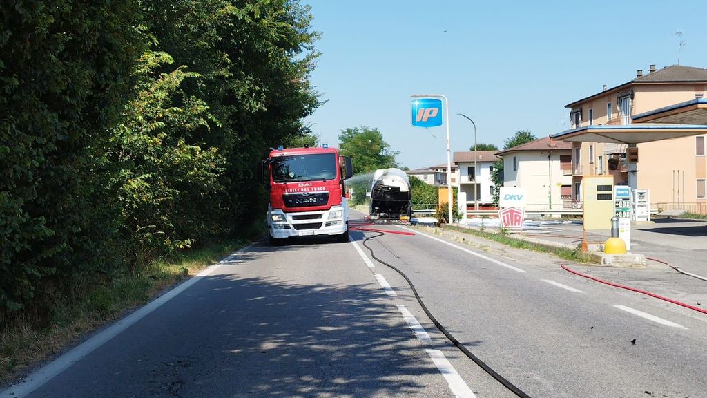Il tempestivo intervento delle squadre antincendio ha evitato il collasso della cisterna, contenendo i danni all’asse posteriore e ai pneumatici.