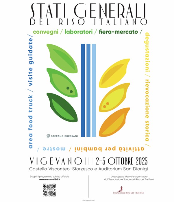 A Vigevano, grazie all’intraprendenza e alla lungimiranza dell’Associazione “Strada Del Riso Dei Tre Fiumi” e della sua Presidente Cristiana Sartori, si terranno dal 2 al 5 ottobre 2025Gli Stati Generali del Riso”. Un’occasione imperdibile che celebrare la Giornata Internazionale del Riso Italiano, gli 80 anni del Riso Carnaroli e i 550 anni del “dono dei dodici sacchi”, quattro giorni dedicati esclusivamente al prezioso alimento in chicchi.